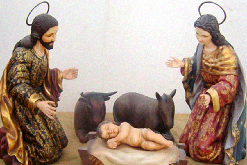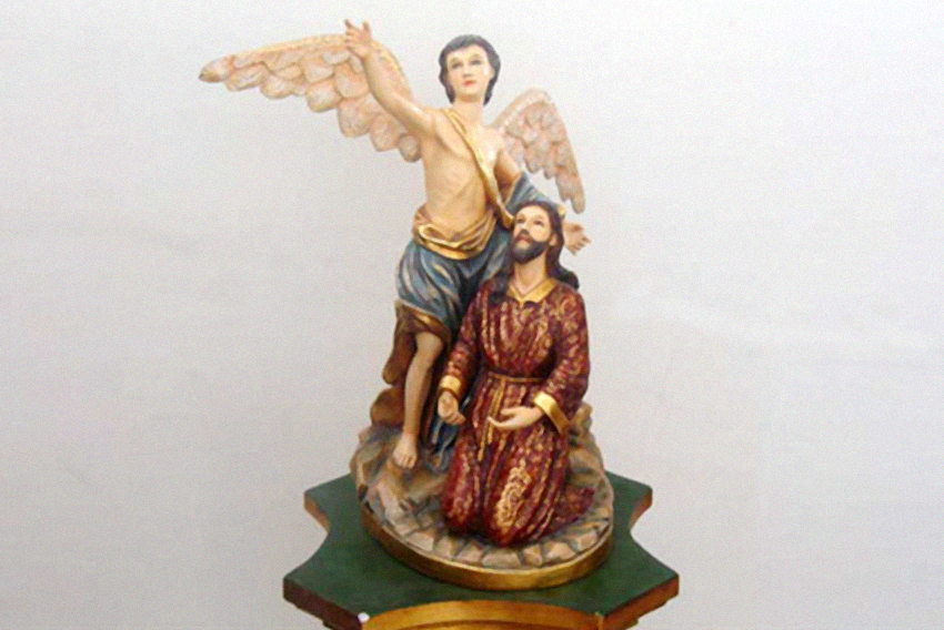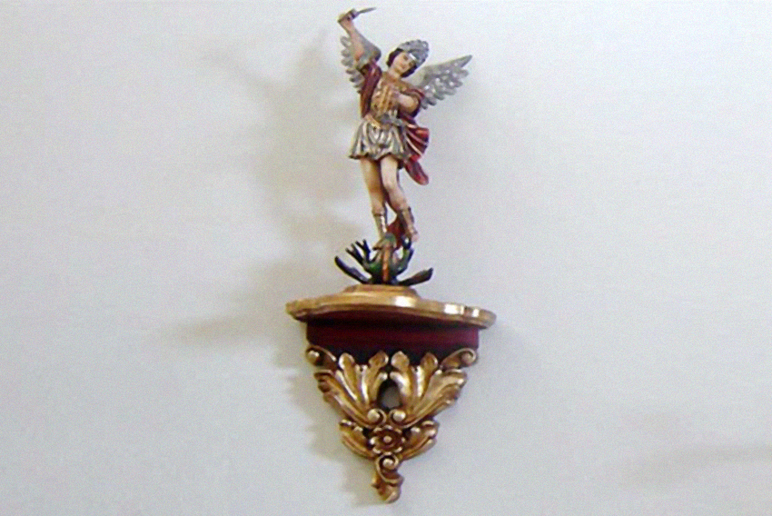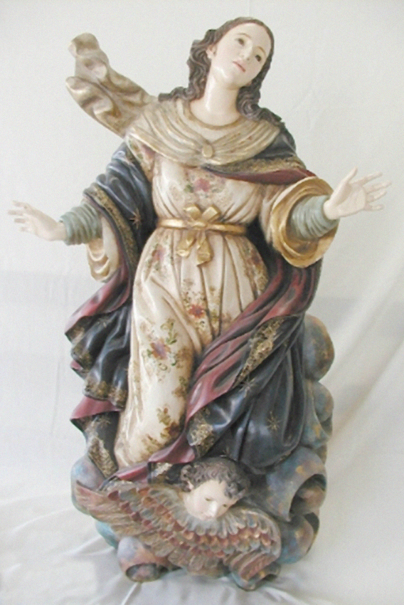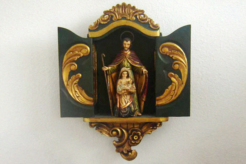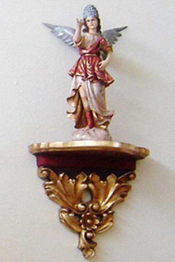 Talla en madera, Policromía en pan de oro, 30 cm. 60 x 50 cm.